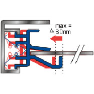 Durch die eingebauten Federn werden Längenausdehnungen von bis zu 3 mm je Seitenteile aufgenommen. Zusätzlich ist der Gleitabschluss